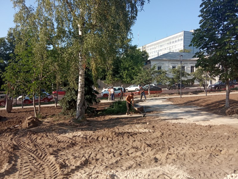 По скверу Интернационалистов подрядчику были высказаны замечания, касающиеся задержки сроков выполнения работ и качества укладки бордюрного камня.