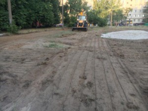 В рамках первого этапа работ была выполнена планировка территории, убран засохший бетон и завезен песок. В рамках второго этапа будут выполнены работы по разравниванию привезенного песка и установлены мини-футбольные ворота с сеткой.