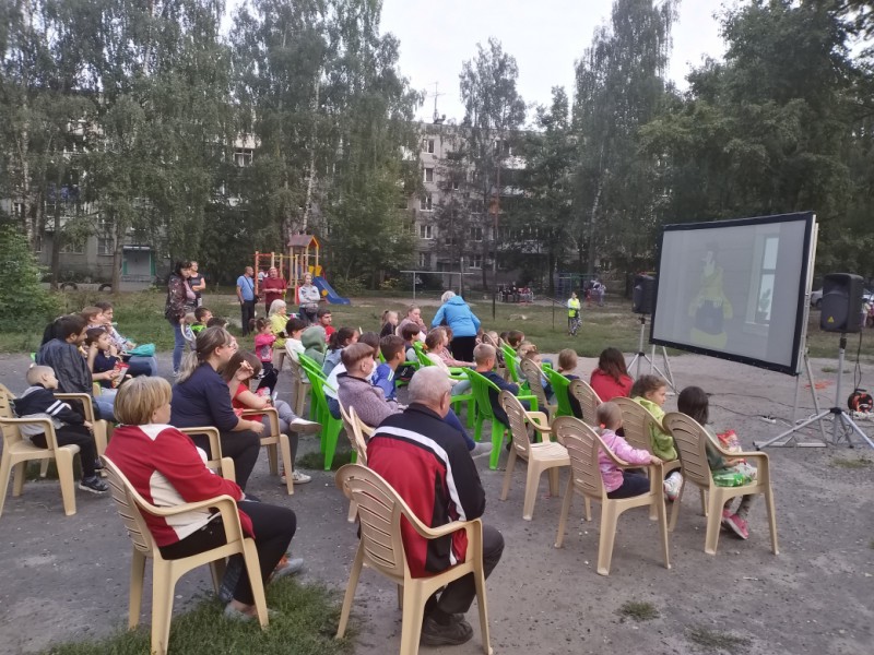 В ТОС микрорайона по улицам Коминтерна-Свободы и поселка Володарский и ТОС поселка Светлоярский и 7-го микрорайона при содействии АНО «Общественное самоуправление Нижнего Новгорода» был организован кинопоказ мультфильмов на открытом воздухе в рамках III ежегодного фестиваля «Кинодворик 2021». Все желающие взрослые и дети приняли участие в просмотре мультфильма «Простоквашино» и «Каникулы в Простоквашино». Ребята с большим интересом смотрела на экран под открытым небом, а после окончания сеанса помогали организаторам собрать стулья.