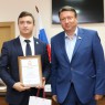 Присутствовавший на заседании Молодежной палаты Председатель городской Думы Нижнего Новгорода Олег Лавричев вручил Роману Золотову Благодарственное письмо «За вклад в развитие молодежной политики Нижнего Новгорода».