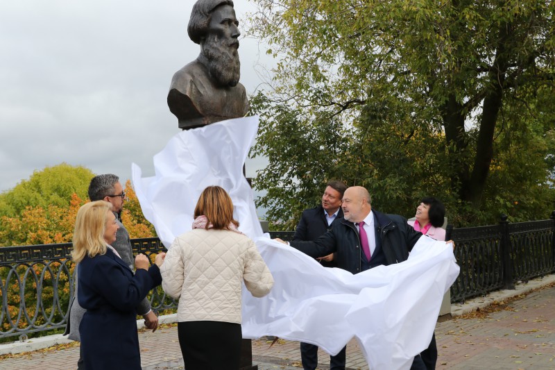 В торжественной церемонии приняли участие министр образования, науки и молодежной политики Нижегородской области Ольга Петрова, уполномоченный по защите прав предпринимателей в Нижегородской области Павел Солодкий, ректор НГЛУ имени Н.А. Добролюбова Жанна Никонова, заведующий кафедрой русской филологии и общего языкознания НГЛУ им. Н.А. Добролюбова МихаилГрачев и скульптор Владимир Кокурин.