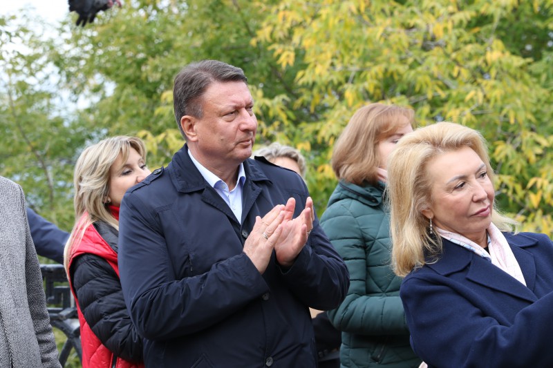 Почетное право открыть монумент было предоставлено министру образования, науки и молодежной политики Ольге Петровой, Председателю городской Думы Олегу Лавричеву и ректору НГЛУ Жанне Никоновой.