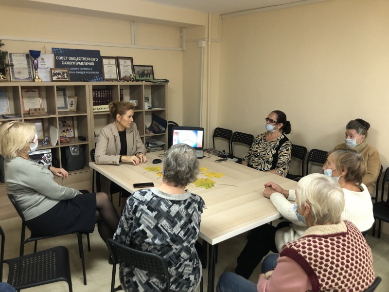 5 октября для активистов ТОС центра Сормова и микрорайона Вождей революции и ТОС имени Валерия Чкалова состоялась встреча с психологом Еленой Бухаркиной на тему: «Осенний период жизни», приуроченная ко Дню пожилого человека. На этой встрече специалист рассказала об особенностях пожилого возраста, о том, как подготовиться к нему и как процветать в этот период жизни. Беседа прошла в тёплой, дружеской обстановке. Вера Смирнова, председатель ТОС центра Сормова и микрорайона Вождей революции, и Анна Дряхлова, председатель ТОС имени Валерия Чкалова, выражают благодарность психологу Елене Бухаркиной за познавательную беседу.