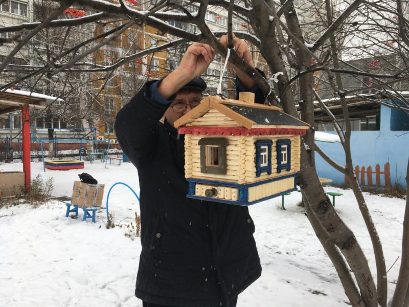 Активный житель Автозаводского района, участник ежегодного конкурса «Я здесь живу, я здесь творю!» Покалякин Юрий Алексеевич передал МБДОУ «Детский сад № 94 «Колосок» кормушку для птиц, выполненную в виде деревянной избушки. Более пятидесяти лет Юрий Алексеевич занимается любимым делом — созданием маленьких деревянных построек. Используя тонкие ветки, прутики, доски, он построил своими руками во дворе многоквартирного дома № 7 на улице Политбойцов миниатюрные церкви, колодцы, деревенские дома, мельницу, сказочные терема, избушку на курьих ножках и многое другое. Его работы радуют детей и взрослых. Холод, снегопады и ветер осложняют жизнь зимующих у нас птиц. С наступлением холодов птицам трудно добраться до корма, а корм в «Столовых для птиц» — кормушках становится спасением для пернатых. Конструкция кормушки от Юрия Алексеевича выполнена так, что корм укрыт от дождя и снега и птицам удобно ей пользоваться. Это отличный подарок и пример для детей, который может научить их любить природу, узнать больше о пернатых обитателях нашего региона и просто научиться что-то делать своими руками. Кормушки могут быть изготовлены из самого разного материала и разного размера, главное, чтобы в кормушках постоянно был корм. «Синички и другие насекомоядные птицы любят семечки подсолнечника, сало, орешки арахиса и крошки белого хлеба», — сообщила воспитанникам детского сада специалист по связям с общественностью Кряжева Валентина Николаевна.