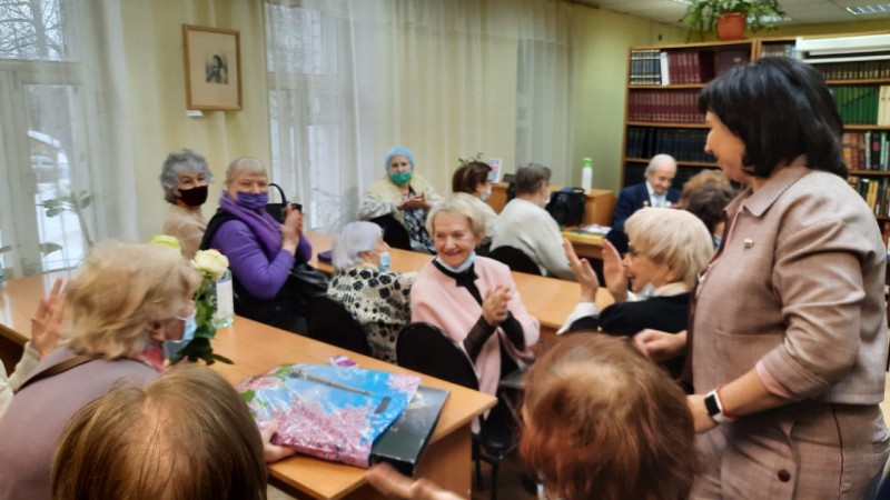 Жанна Скворцова выступила с поздравительным словом и вручила всем подарки. Отдельно депутат поздравила постоянную читательницу библиотеки Нэлю Константиновну Яговкину, которая несколько дней назад отметила 85-летие. Нэля Константиновна – член Совета ветеранов, участник литературно-музыкальной гостиной, сочиняет стихи.