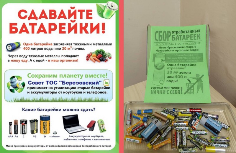 ТОС микрорайона «Березовский» присоединился к долгосрочной акции по сбору отработанных батареек. Теперь в помещении Совета общественного самоуправления ТОС микрорайона «Березовский», расположенном по адресу: город Нижний Новгород, Московское шоссе, д. 155, осуществляется сбор батареек на утилизацию, которые содержат в себе опаснейшие тяжелые металлы: кадмий, цинк, марганец, калий и т. д. Эти элементы очень сильно загрязняют окружающую среду. По оценке ученых одна батарейка загрязняет 400 литров воды или 20 квадратных метров почвы. Совет общественного самоуправления ТОС микрорайона «Березовский» планирует проведение агитационных пикетов, раздачу листовок и выездных точек сбора отработанных батареек при проведении своих мероприятий для организации широкой разъяснительной работы с населением.