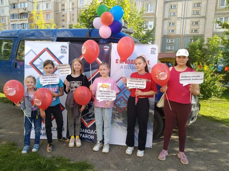 31 мая 2022 года во дворе дома по пр. Ильича 42а состоялся дворовый праздник для жителей «День соседей». «Развитие добрососедства — основная цель Соседского центра „На Молодежном“, поэтому мы считаем этот праздник очень вдохновляющим. Праздничное мероприятие мы по традиции проводим совместно с нашими добрыми партнерами ООО „Жилсервис №26“, детскими садиками 74 и 81, Библиотечно-досуговым центром. Большое им спасибо за помощь в организации!», — выразила благодарность за помощь в организации мероприятия партнерам Елена Пудова, председатель Совета ТОС №1. Погода не подвела, на площадке было тепло и солнечно и не только от погодных условий, но и от соседских улыбок, детского смеха, добрых слов и душевных пожеланий. Праздник начался с приветственных слов в адрес всех присутствующих, затем ведущая мероприятия Яна Крытаева, музыкальный руководитель МБДОУ «Детский сад №74» напомнила нам историю возникновения этого, сравнительно молодого, праздника «Международного Дня соседей». Самым активным общественникам Соседского центра «На Молодежном» вручили благодарственные письма и подарки от наших спонсоров. Далее жителям было предложено поучаствовать в работе площадок по интересам: — творческие мастер-классы, — настольные игры для детей и взрослых, — детские рисунки на асфальте, — фотозона, — «Веселые старты» для детей. Закончился праздник совместным, веселым танцем детей и взрослых под зажигательный ретро-хит «Замечательный сосед». Выражаем слова благодарности депутату городской Думы города Нижнего Новгорода В.П. Аношкину, который с 2005 года поддерживает ТОС №1 в организации мероприятий для жителей Автозаводского района, в том числе и дворовых праздников. В этом году стало приятной неожиданностью спонсорское участие в организации нашего праздника детского семейного кафе «Пицца Фабрика». «Нам приятно знать, что в нашем районе есть такие социально-ориентированные предприятия, которые поддерживают принципы добрососедства», — сообщила Елена Васильевна.