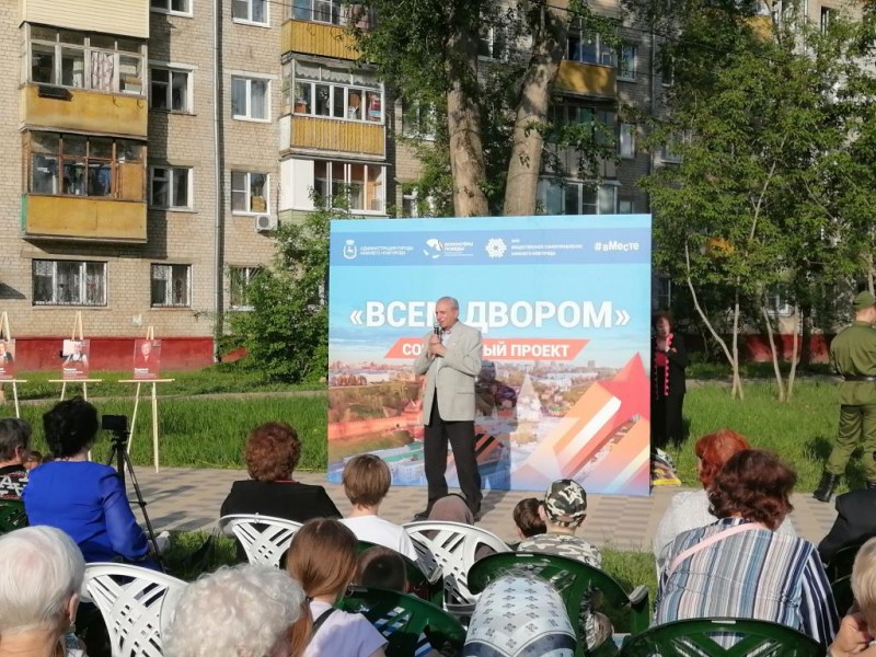 2 июня в сквере им. Прыгунова состоялось большое праздничное мероприятие в рамках реализации социального проекта «Всем двором», организованное АНО «Общественное самоуправление города Нижнего Новгорода» и волонтерами Победы. В самом начале мероприятия всех жителей поздравила с праздником заместитель главы администрации Автозаводского района по организационной работе Марина Демидова, председатель Совета ТОС № 3 Татьяна Сухарева и заместитель председателя МРО «Ассамблея народов России», член общественной палаты г. Нижнего Новгорода Александр Федорович Селеенков. Затем перед жителями выступили творческие коллективы Автозаводского района: ансамбль «Второе дыхание», ансамбль песни микрорайона «Доскино», активный житель Совета территориального общественного самоуправления №3 Лидия Ежова, вместе пели под гармонь любимые песни и танцевали. Для детей проходили творческие мастер -классы. Затем было организовано чаепитие с самоваром. Завершилось мероприятие просмотром выпусков детского юмористического киножурнала «Ералаш».