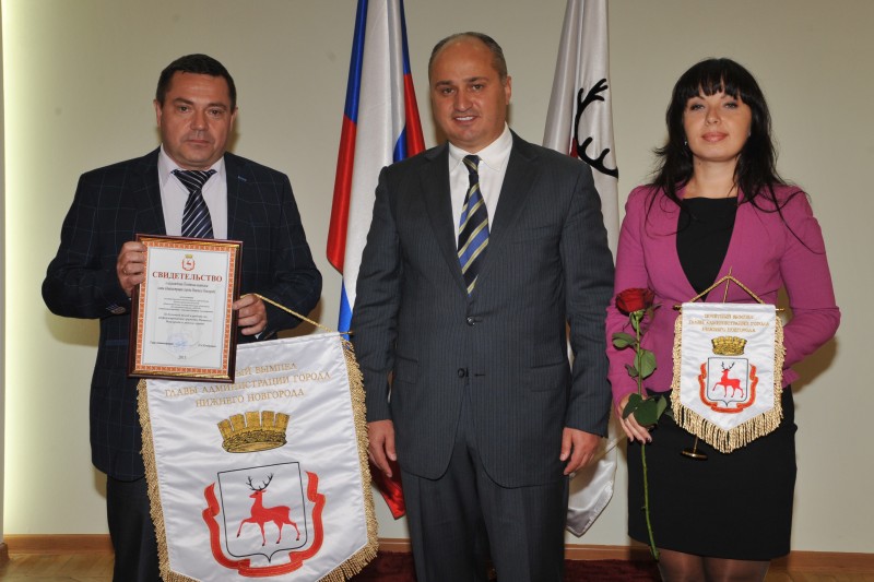 04.09.2013Депутаты городской Думы Нижнего Новгорода Дмитрий Анисимов, Игорь Тюрин и Владимир Аношкин награждены переходящими Почетными вымпелами «За большой вклад в развитие города»
