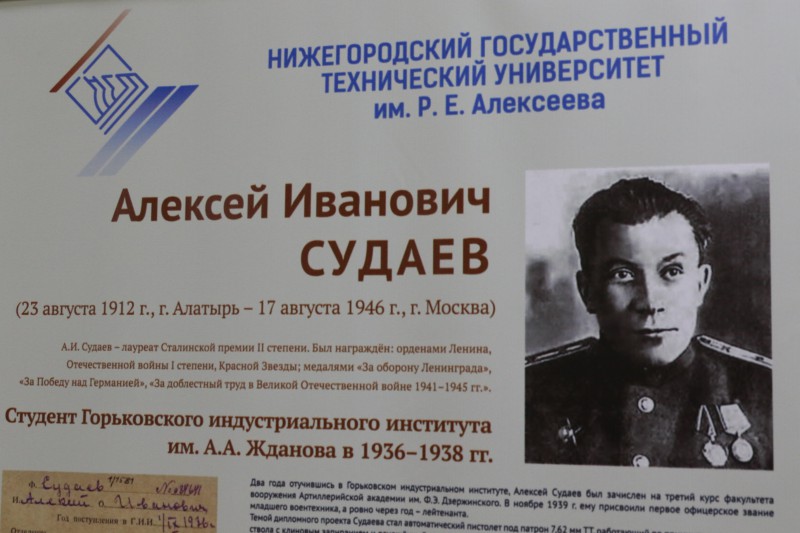 По его словам, выпускник Горьковского индустриального института имени А. А. Жданова (ныне НГТУ) Алексей Судаев вошел в историю стрелкового оружия как создатель одного из самых распространенных видов оружия в годы Великой Отечественной Войны – ППС-43 и перспективной модели автомата АС-44.