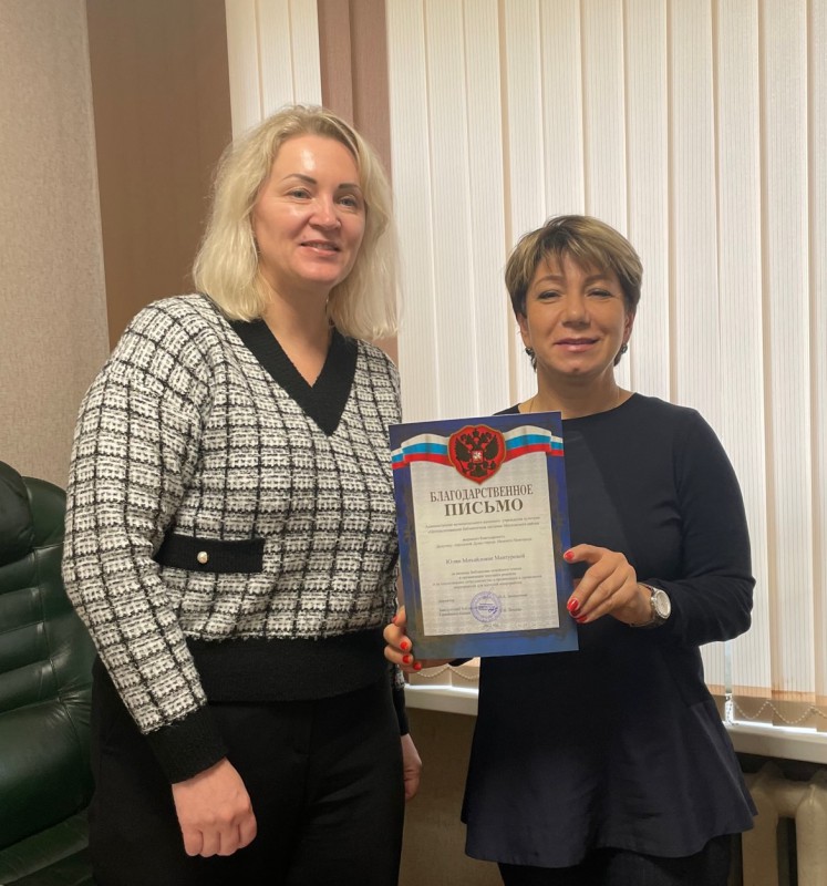 14 октября 2022 года заведующая библиотекой-филиалом им. А. И. Герцена Людмила Леонидовна Сорокина от имени коллектива учреждения выразила искреннюю благодарность и глубокую признательность за плодотворное сотрудничество депутату городской Думы Нижнего Новгорода Юлии Мантуровой.