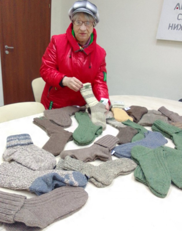 Огромное спасибо рукодельницам, великим труженицам ТОС «Орджоникидзе»! Первая партия связанных ими носочков «ушла» пока в АНО ОС НН, потом, когда связанные изделия соберут со всех ТОС, носки передадут нашим воинам. Мастерицы продолжают вязать. За короткое время мастерицы ТОС «Орджоникидзе» связали 23 пары носочков. Они получились разные, но все отличные. Теплые, уютные, домашние.