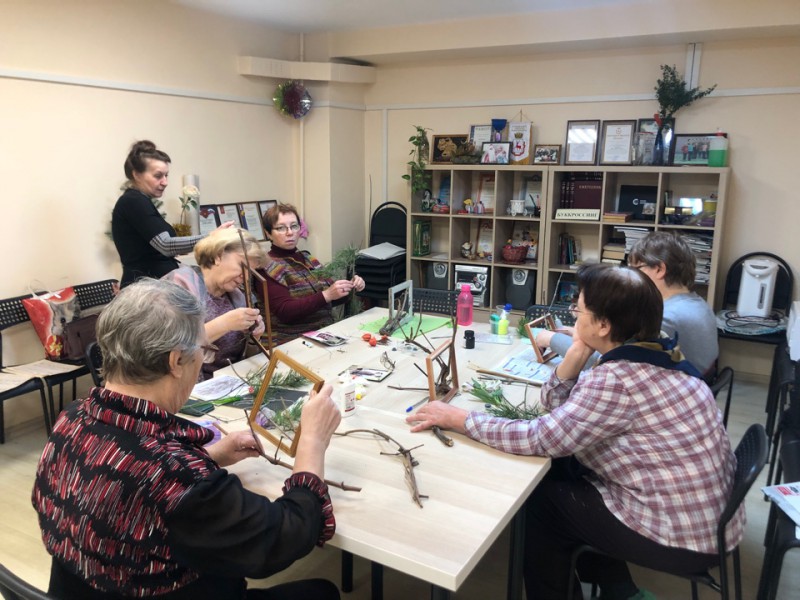 На минувшем занятии в клубе «Икебана» ТОС центра Сормова и микрорайона Вождей революции делали композиции к Новому году. С помощью колбочки, цветов, веток и рамки создавали шедевры. Потом прошел небольшой обзор по каллиграфии.
