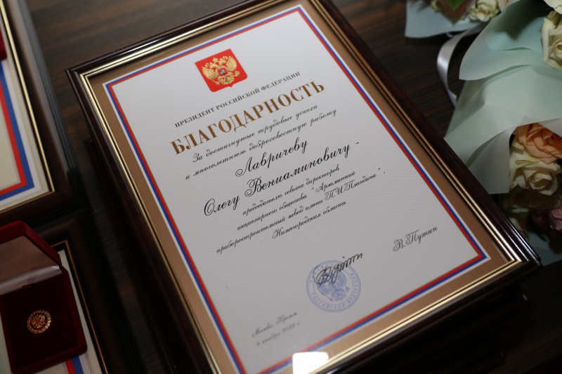 Благодарность Президента Российской Федерации была вручена председателю городской Думы Нижнего Новгорода Олегу Лавричеву.