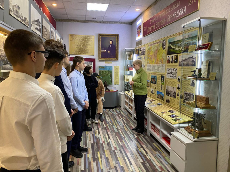 Директор музея Сергей Леонов и экскурсовод Наталья Данилевич рассказали ребятам о своем большом опыте работы на самом заводе и как они связали свою жизнь с музеем.