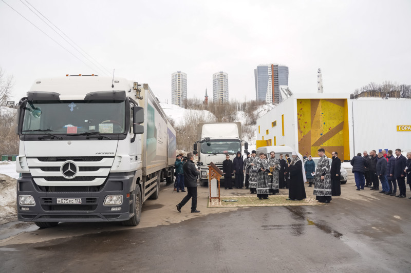Автомобили с гуманитарной помощью для мобилизованных граждан и военнослужащих Министерства обороны Российской Федерации освятил Митрополит Нижегородский и Арзамасский Георгий.