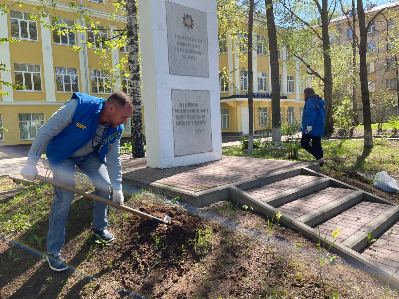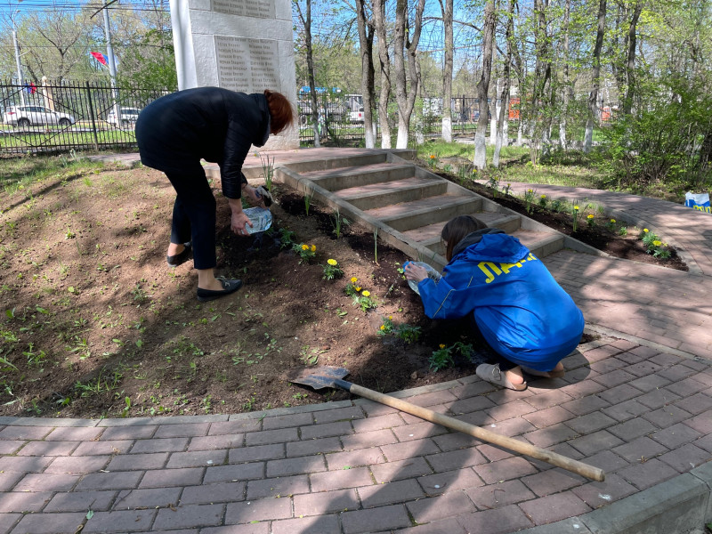 В преддверии 9 Мая депутат городской Думы Нижнего Новгорода Николай Чернышов совместно с однопартийцами и сотрудниками музея Приокского района высадили цветы у Обелиска памяти павшим ученикам школы N45.