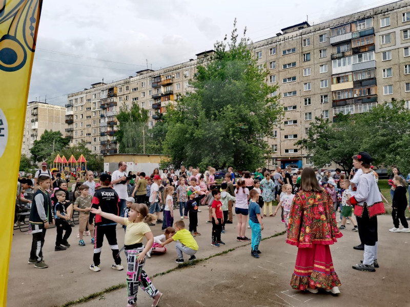 24 мая на территории ТОС №6 (председатель О.Н. Гусева) во дворе дома № 8 по улице Комсомольской состоялось праздничное мероприятие, которое проводится в рамках реализации социального проекта «Всем двором!». Организаторы АНО «Общественное самоуправление Нижнего Новгорода», администрация Нижнего Новгорода совместно с Нижегородским региональным отделением Всероссийского общественного движения «Волонтеры Победы». Сегодня более 300 человек собрались на дворовой площадке, где дружно пели, танцевали и смотрели мультфильмы. Самые активные получили призы и подарки. В заключение праздника организован «Кинодворик» вечерний просмотр мультфильмов «Ну, погоди!».