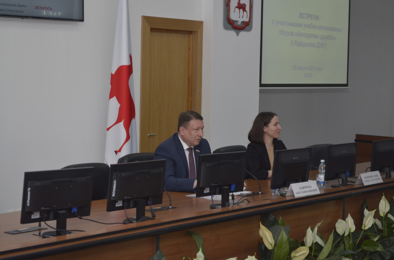 29 марта 2023 года председатель городской Думы Нижнего Новгорода Олег Лавричев встретился со старшеклассниками из города Харцызск Донецкой Народной республики, которые прибыли в Нижний Новгород для прохождения учебно-интенсивных сборов по общеобразовательным предметам «Алгоритмы дружбы», организованных по поручению регионального министерства образования и науки на базе ГБОУ «Лицей-интернат «Центр одаренных детей» (ЦОД).