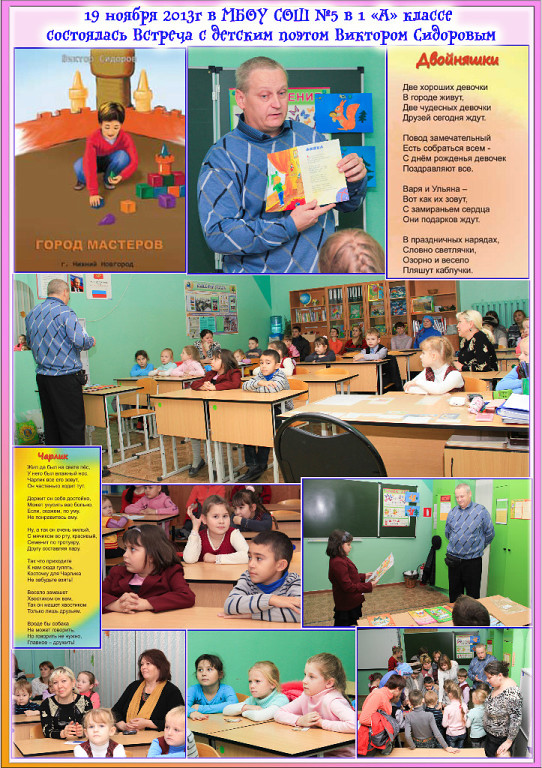 Это название одной из книг писателя Виктора Сидорова, встреча с которым состоялась 19 ноября в школе № 5. В 1 «А» классе собралось около 30 детей и их родителей.