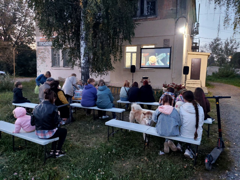 Члены Совета ТОС № 14 поселка Новое Доскино закрыли сезон мероприятий «Наш Кинодворик» под открытым небом показом российской семейной комедии — «Чебурашка». Теплым осенним вечером жители поселка собрались на открытой площадке у помещения ТОС (13 линия, 13). Мест в импровизированном зале под открытым небом было достаточно для всех желающих, оделись потеплее, взяли с собой пледы — на дворе осень. Звездное небо, свежий воздух, хороший фильм, домашняя атмосфера и ничего лишнего! До начала, сеанса дети посмотрели выпуски киножурнала «Ералаш». «В рамках реализации проекта „Наш Клуб“ „Наш Кинодворик“ продолжится в помещении Совета ТОС. Будут проходить и творческие мастер-классы для детей и взрослых, тематические встречи, беседы, показ детских мультипликационных фильмов и еще много чего интересного мы планируем организовать для жителей поселка в осенне-зимнем сезоне», — рассказала председатель Совета ТОС №14 поселка Новое Доскино М.А. Беляева. Данное мероприятие прошло в рамках проекта «Наш Клуб», который стал победителем конкурса общественных инициатив «СВЕТИ», организатором которого является Автономная некоммерческая организация «Центр поддержки социальных проектов Нижнего Новгорода» (https://vk.com/cpspnn52) при поддержке администрации города Нижнего Новгорода проекта — победителя конкурса.