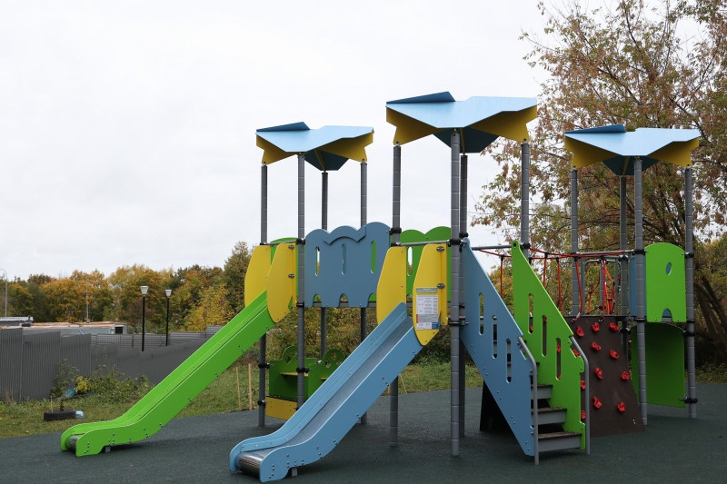 Работы по благоустройству были проведены в рамках проекта инициативного бюджетирования «Вам решать!». На площадке установили новый игровой комплекс для развития физических навыков, песочницу, качели, турники, гимнастические кольца. Для безопасности детей на площадке уложили резиновое покрытие.
