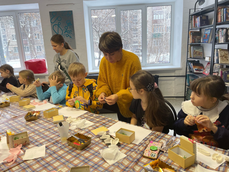 26 ноября 2023 года в День Матери, в библиотеке им. А.И. Герцена для мам, бабушек и детей была организована семейная гостиная с разными зонами: мастер-класс «Праздничная коробочка для мамы», «Веселый гномик» и «Совята» для бабушек.