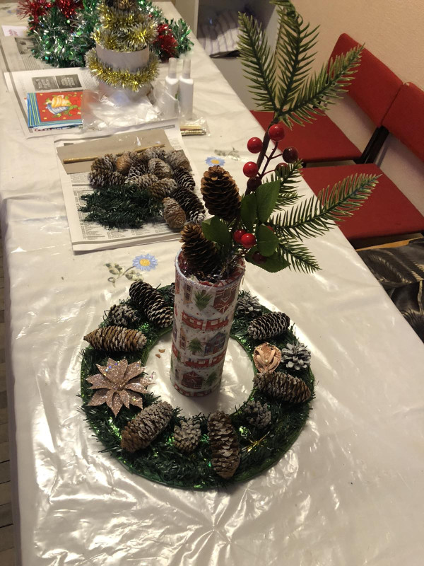 В ТОС им. Н.А.Зайцева продолжает свою работу клуб «Подружка». На очередной встрече члены клуба решили изготовить новогодний венок из подручных материалов. Шишки, мишура, ветки и другие украшения, интересные идеи — и вот новогодний венок готов. В дальнейшем планируется изготовление новогодних поделок, аппликаций из природных материалов, — все эти занятия развивают силу, выносливость мышц рук. А также заряжают позитивом и хорошим настроением. Двери клуба «Подружка» открыты каждую среду с 13.00 до 14.00. Ждем всех желающих по адресу: г. Н.Новгород, ул. Зайцева, д.7 — ТОС им. Н.А.Зайцева.