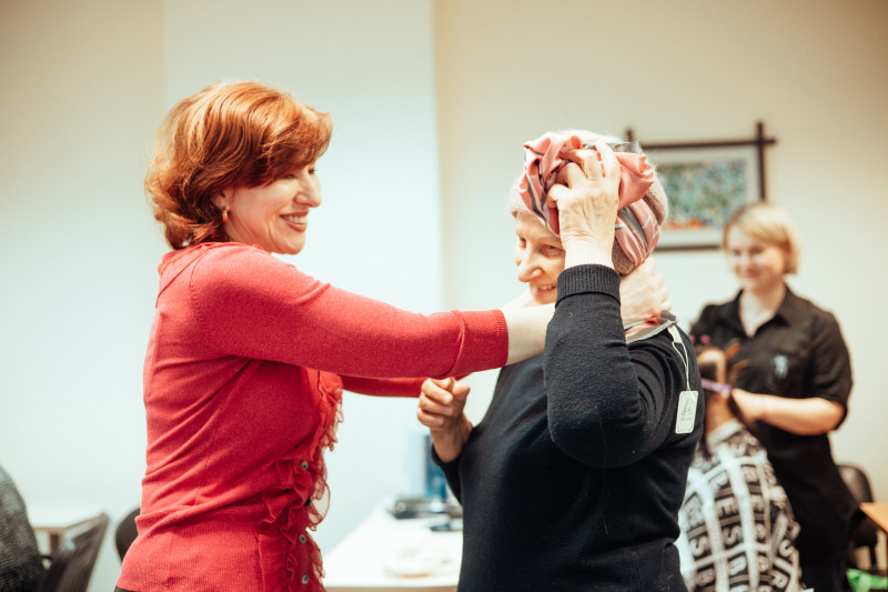 На мероприятии стилист показал пациенткам «1000 и 1» способ завязывания платочков, шарфиков и бандан на голову. Специалисты обучили их основам мейкапа, провели мастер-класс по уходу за ногтями и волосами. Каждой участнице сделали макияж, укладку и маникюр.