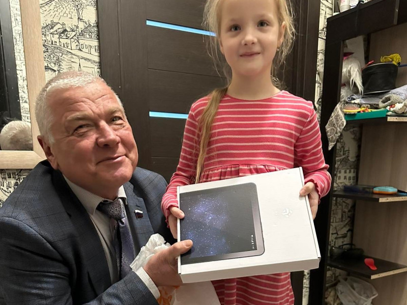 Напомним, депутат снял с елки шар-открытку девочки 25 декабря. Арина попросила на Новый год подарок-сюрприз. Владимир Тарасов тогда сообщил о намерении связаться с родителями девочки, чтобы подобрать «действительно желанный подарок». В результате было решено подарить девочке планшет.