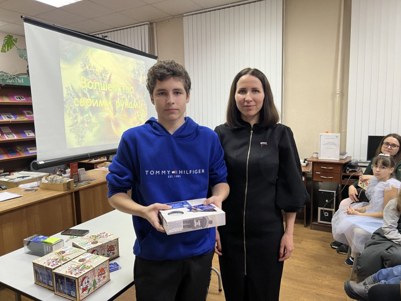 Депутат городской Думы Нижнего Новгорода Татьяна Дружинина наградила самых креативных и творческих участников детского конкурса новогодних поделок «Волшебство своими руками».