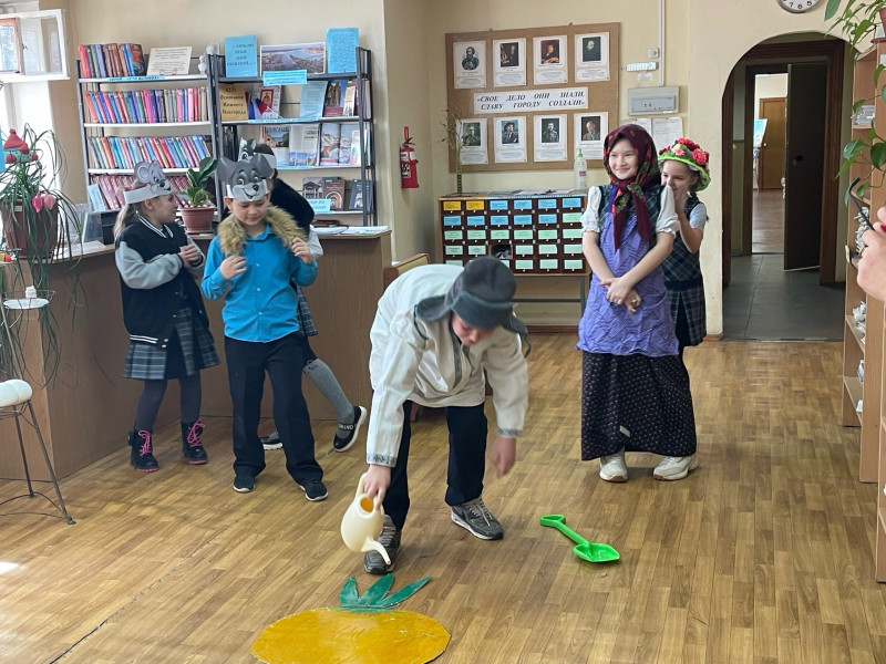 Для подрастающего поколения, наших потенциальных читателей был проведен мастер-класс закладка для книжки «Герой сказки» с чтением произведения «Кошкин дом» по ролям. И, самое впечатляющее, интересное, незабываемое – театральное представление на импровизированной сцене по сказке «Репка» силами самих учащихся, юными актерами школы №149.