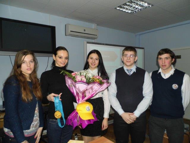 В рамках предстоящей олимпиады в Сочи при поддержке депутата Гойхмана А.Л. на 12-м округе для школьников продолжаются олимпийские встречи. На этот раз олимпийская чемпионка Ирина Белова провела открытый урок для старшеклассников гимназии №2 (директор Калинина Т.С.). В ходе видеопрезентации гимназисты не только послушали Ирину Белову, но и сами активно участвовали в диалоге, не забыв при этом подержать олимпийский трофей и сфотографироваться с чемпионкой Сиднея. На этом олимпийские встречи при поддержке депутата Гойхмана А.Л. не завершаются - в школы округа приедут другие олимпийские чемпионы.