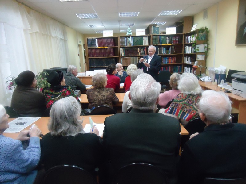 12 февраля в библиотеке имени Добролюбова в рамках литературно - музыкальной гостиной состоялась встреча читателей и активистов микрорайона "Горьковский" с заслуженным артистом России, лауреатом Пушкинской премии, премии Нижнего Новгорода, режиссером - постановщиком Нижегородского государственного театра оперы и балета имени А.С. Пушкина Отаром Михайловичем Дадишкилиани, который поделился с участниками встречи своими взглядами на балетное и оперное искусство, рассказал о встречах с великими людьми: А. Хачатуряном, Л. Якобсоном, Ю. Григоровичем, многими знаменитыми артистами оперы и балета.