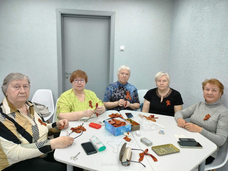 В помещении Совета общественного самоуправления ТОС микрорайона по улицам Коминтерна-Свободы и поселка Володарский прошел мастер-класс по изготовлению брошей «Георгиевская ленточка». Георгиевская лента — главный атрибут Дня Победы. 9 мая миллионы людей прикрепляют ленточки, чтобы проявить уважение к воинам и показать, что память об их подвиге жива. Лента возникла в 1769 году, когда императрица Екатерина II утвердила орден Святого Георгия. Этот знак отличия вручали офицерам за подвиги в Русско-турецкой войне. Награду следовало носить на полосатой ленте государственных цветов — чёрного и жёлтого. По названию ордена она получила имя георгиевской. Особый статус георгиевской ленты сохранялся до тех пор, пока большевики не отменили все царские награды. Однако лента вернулась в самом начале Великой Отечественной войны. Солдатам нужен был общий символ, который способен поднять дух и повести в атаку. Новые награды только вводились и не успели заслужить всеобщего уважения, поэтому обратились к георгиевской ленте — олицетворению мужества и героизма. В дальнейшем появились медали с георгиевскими планками и ордена с георгиевскими лентами. Новый виток в истории ленты случился в 2005 году, на 60-летие Победы. Тогда впервые провели акцию «Георгиевская ленточка». Как и раньше, лента объединила людей и впоследствии стала знаком благодарности за мирное небо над головой. Носить георгиевскую ленту следует на груди рядом с сердцем, она должна быть подколота булавкой или привязана ниткой, её можно закрепить в виде банта или петельки.