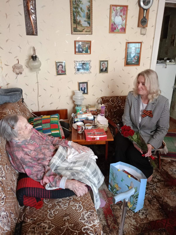Депутат пообщалась с Пеленкиным Николаем Алексеевичем и Ермиловой Ниной Михайловной, которые поделились своими воспоминаниями о войне. Нина Михайловна в годы войны служила рядовой, совсем молодой девочкой ушла на фронт вместе с такими же, как она. После окончания войны вернулась в родной город, до выхода на пенсию работала в детском доме инструктором по труду. Награждена Орденом Отечественной войны 2 степени, медалями «Ветеран труда», «За доблестный труд в ознаменования 100-летия со дня рождения В.И. Ленина», знаками «Победитель социалистического соревнования». В этом году Нина Михайловна отметила 99-летие.