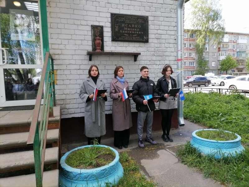 3 мая 2024 года на ул. Лескова, 4, у мемориальной доски Герою Советского Союза М.А. Исайко, состоялось памятное мероприятие, приуроченное к 79-годовщине Победы в Великой Отечественной войне. Мероприятие открыла председатель Совета ТОС № 3 Т.В. Сухарева, она поздравила всех присутствующих с наступающим праздником Великой Победы. Учащиеся к МОУ СОШ № 169 подготовили литературный монтаж и рассказали биографию героя. С поздравлением ко всем присутствующим обратились представители Молодежного Совета библиотек Автозаводского района. Они выступили с обращением к учащимся не забывать своих героев, которые отдали свои жизни за наше светлое будущее. В мероприятии так же приняли участие представители клуба «Изюминка"-"Дети войны» и жители ТОС № 3. В конце мероприятия почтили память героев минутой молчания и возложили цветы к мемориальной доске М.А. Исайко. Такие мероприятия расширяют знания детей о Великой Отечественной войне, воспитывают уважительное отношение к подвигу соотечественников, воинов-победителей и любовь к Родине.