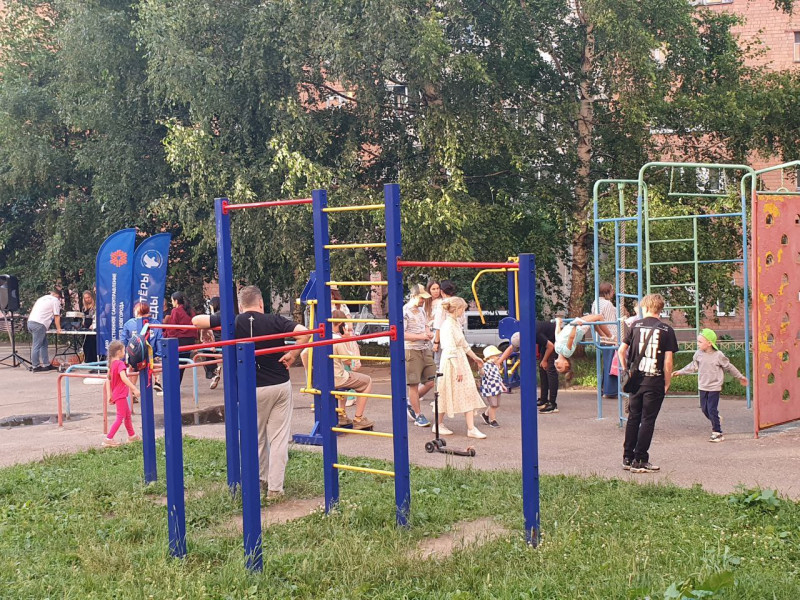На спортплощадку у дома 142а по ул. Горького пришли дети, их родители, представители старшего поколения. Главным героем праздника стал старый добрый персонаж – Петрушка, который играл и танцевал с участниками.