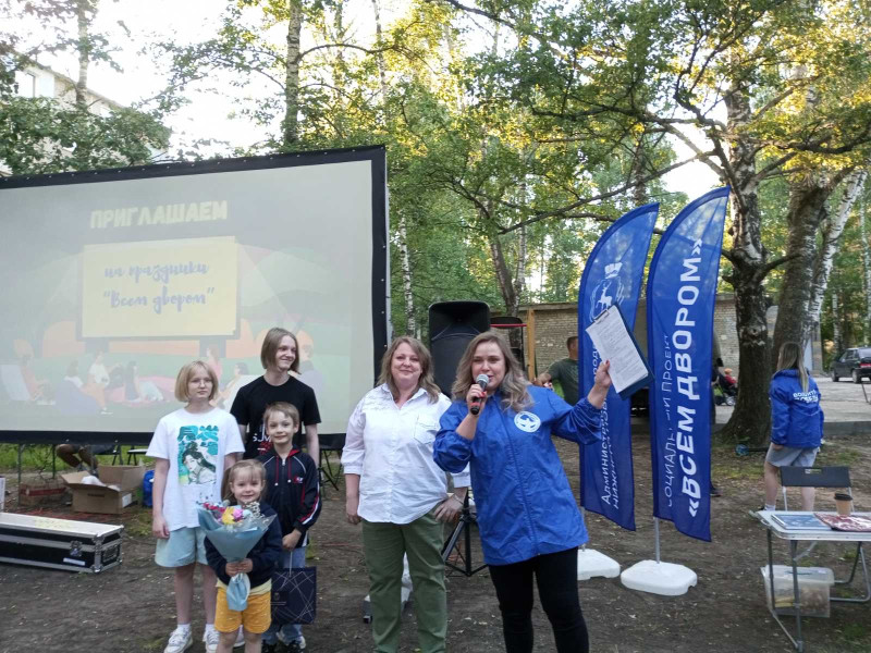 Социальный проект «Всем двором», реализуемый администрацией города Нижнего Новгорода, АНО «Общественное самоуправление Нижнего Новгорода», Всероссийским общественным движением Волонтеры Победы, проходит на территории города Нижнего Новгорода уже несколько лет и каждый раз на площадке собираются жители разных возрастов, чтобы поучаствовать в празднике. В этом году проект посвящен семейным ценностям, так как указом Президента РФ 2024 год объявлен Годом семьи. 26 июня для жителей ТОС квартала Энгельса и бульвара Юбилейный состоялся праздник «Всем двором», где каждый пришедший нашел занятие по душе. Ребята с большим удовольствием поучаствовали в мастер-классах, потанцевали, поиграли и пофотографировались с ростовой куклой Мишутка, а взрослые послушали концертную программу и поучаствовали в викторинах о знании Нижнего Новгорода и свадебных датах и лотерее. Две многодетные семьи были отмечены на мероприятии, им вручили подарок и букет цветов. Праздник закончился совместным просмотром художественного фильма под открытым небом. Мероприятие получилось подобрососедски теплым, добрым и веселым.
