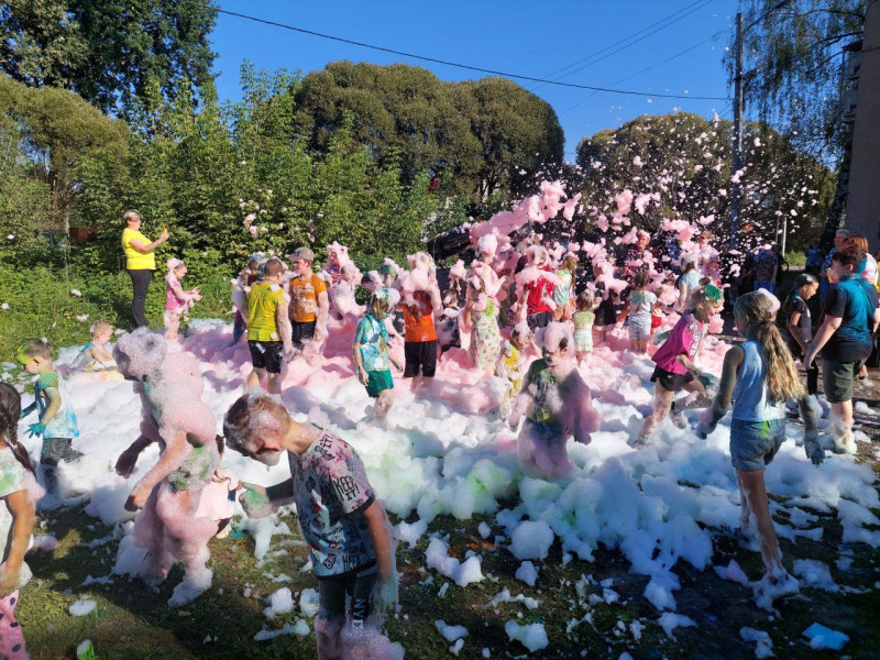 В посёлке Новое Доскино прошёл, пожалуй, один из самых ярких праздников лета — детский праздник «Краски лета». Событие организовано членами Совета ТОС №14 пос. Новое Доскино. В программе праздника была состоялась тематическая разминка — викторина и конкурс рисунка на асфальте, которые были посвящены теме 90 летия — посёлка. Дети активно отвечали на вопросы викторины, рисовали посёлок будущего и что бы они хотели видеть в нашем посёлке. Подводя итоги тематической разминки организаторы вручили всем участникам сладкие призы и сувениры. Улыбку, веселье и отличное настроение подарил Фестиваль красок Холи. Завершилось мероприятие красивой пенной вечеринкой. «Праздник подарил всем — детям и взрослым исключительно положительные эмоции. Всем было весело, всё было ярко! Так же, участники праздника воспользовались фото-зоной с белым медведем и пандой» — поделилась организатор Марина Беляева. Благодарим предпринимателя Александру Стрельцову за поддержку мероприятия, фестиваль красок и множество пенных радостей!