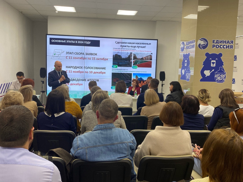23 сентября в Штабе общественной поддержки партии «Единая Россия» состоялось обучение для председателей ТОСов, советов МКД и активных жителей Нижнего Новгорода по вопросам приема конкурсных заявок на участие в губернаторском проекте «Вам решать!».