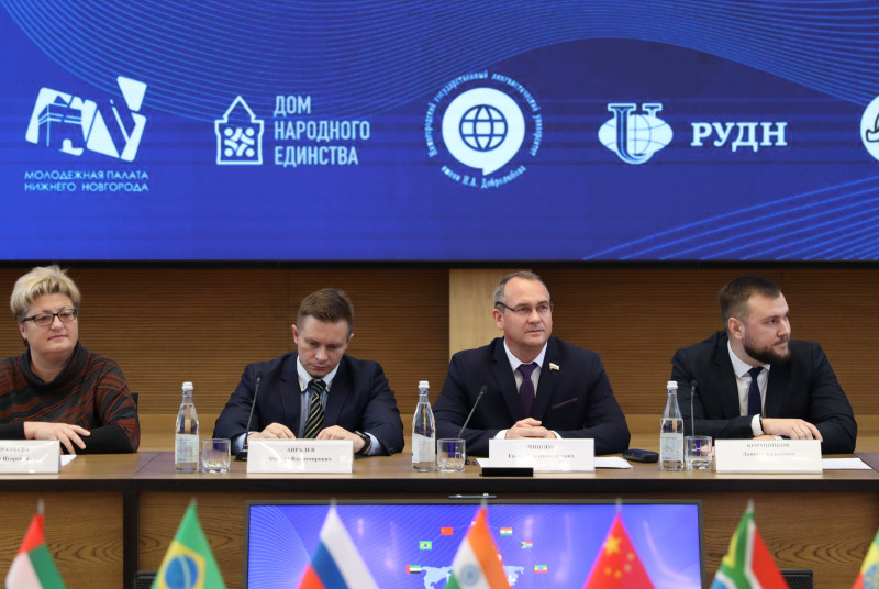 На мероприятии, организованном в рамках председательства России в БРИКС НГЛУ им.Н.А.Добролюбова и Молодежной палатой при городской Думе, с участием администрации города, Центра общественных связей Нижегородского дома народного единства, Российского университета дружбы народов, Ассоциации иностранных студентов России, Филиала Молодежной платформы для стран ШОС SСOLAR Network, присутствовали представители регионального министерства внутренней региональной и муниципальной политики, профильных департаментов администрации города, члены Совета молодых дипломатов МИД России, российские и зарубежные специалисты в области международных отношений и студенты.