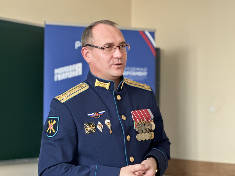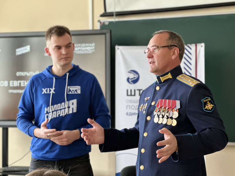 Евгений Чинцов рассказал молодежи о своем жизненном пути, военной службе, участии в президентской программе «Время героев» и текущей работе в качестве депутата и председателя городской Думы Нижнего Новгорода.