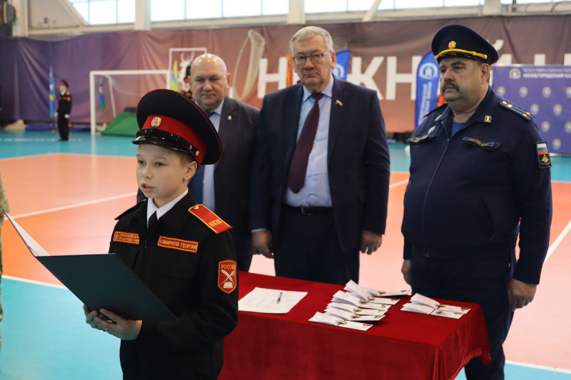 29 ноября в Нижегородской кадетской школе состоялось торжественное мероприятие «Клятва Кадета», которое прошло на базе ФОК «Заречье». Почетным гостем церемонии стал заместитель председателя городской Думы Николай Сатаев, вручивший нижегородским кадетам нагрудные знаки и удостоверения.