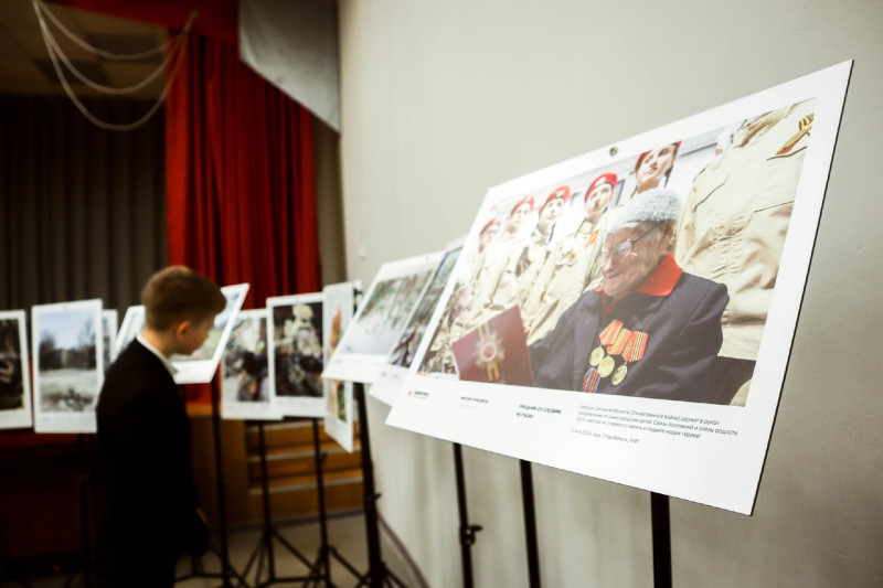 В рамках открытия выставки прошел Урок мужества. Его провел участник СВО, награжденный медалью «За отвагу», Георгиевским крестом Владислав Далекин.