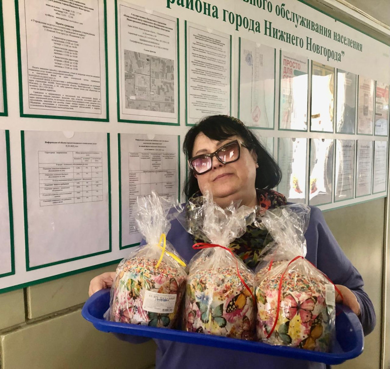 Накануне праздника Светлой Пасхи депутат городской Думы Ольга Балакина традиционно проводит благотворительную акцию. Более ста куличей при содействии депутата было закуплено и передано в «Комплексный центр социального обслуживания населения Нижегородского района» и общественную организацию инвалидов, а также в Зеленый город для одиноких и малоимущих граждан