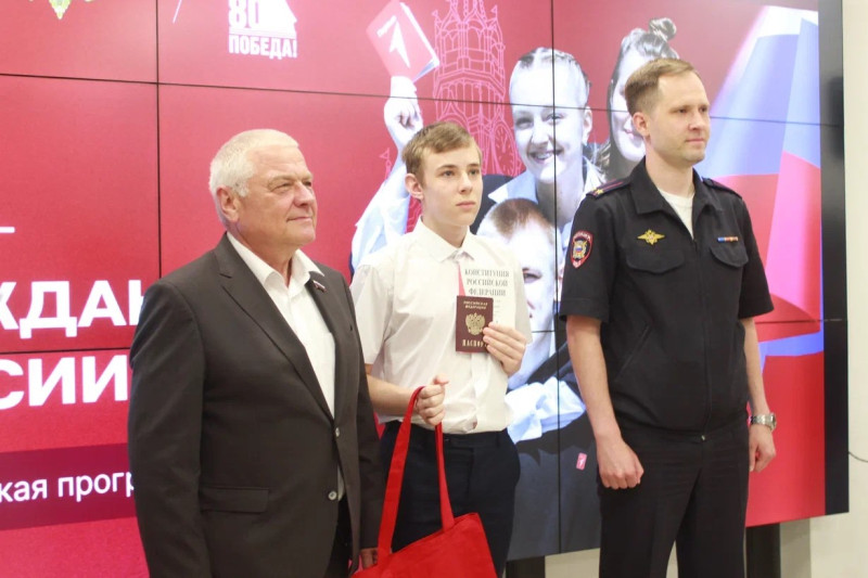 Затем Владимир Тарасов и заместитель начальника областного Управления по вопросам миграции Алексей Ходаков вручили первые паспорта 19 юным нижегородцам - отличникам учебы, спортсменам, Волонтерам Победы, юнармейцам, - тем, кто личным примером и делом, прославляют Нижний Новгород, регион и всю страну.