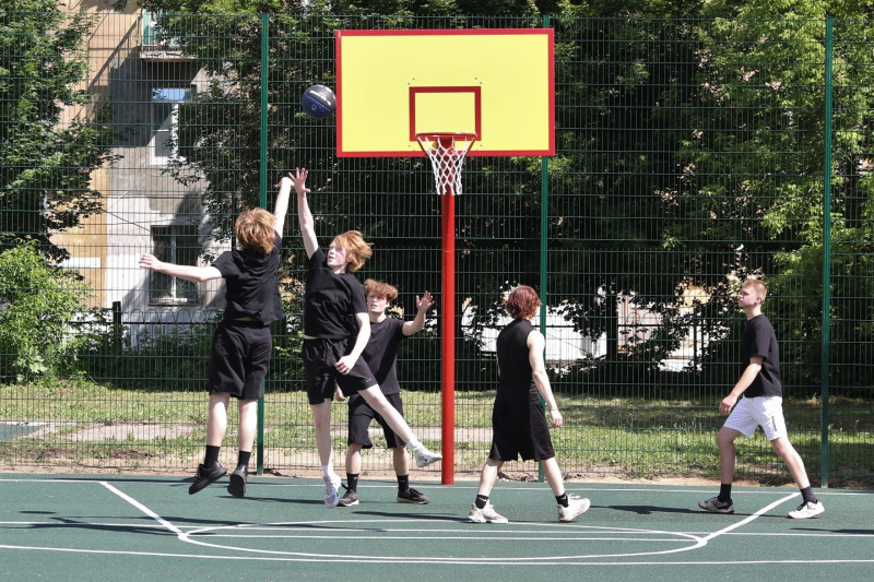 В школе № 66 многофункциональную площадку установили на месте пустыря. Представитель подрядной организации Никита Серебряков рассказал, что педагоги школы активно участвовали в проработке проекта, чтобы аккуратно вписать ее в существующую территорию. «Вместе с учителями мы тщательно изучали территорию, продумывали размещение элементов. Эту площадку мы сделали овальной формы, что позволяет ребятам комфортно заниматься на ней бегом», – рассказал он.