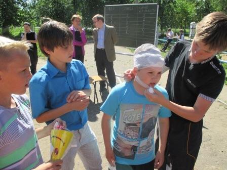 Игра захватила всех - ребята с азартом бегали, кидали в цель гранаты, надевали противогазы и отвечали на сложные вопросы.