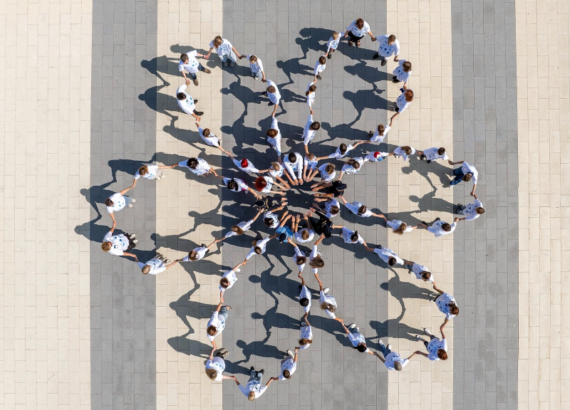 На Стрелке состоялся флешмоб «Символ семьи», организованный региональным отделением Всероссийского общественного движения «Волонтеры Победы» совместно с единым военно-патриотическим центром «Авангард» при поддержке правительства Нижегородской области и Марии Самоделкиной. Сотня представителей нижегородской молодежи, выстроившись на площади в виде главного символа праздника (ромашки), записала видеопоздравление для земляков.